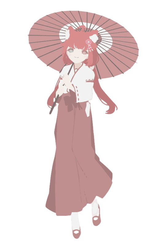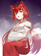 Shizuka is a miko haunted by her shrine's fox spirit. Her pigtails are actually attachments that she usually only wears for decoration. They mostly just get in the way.