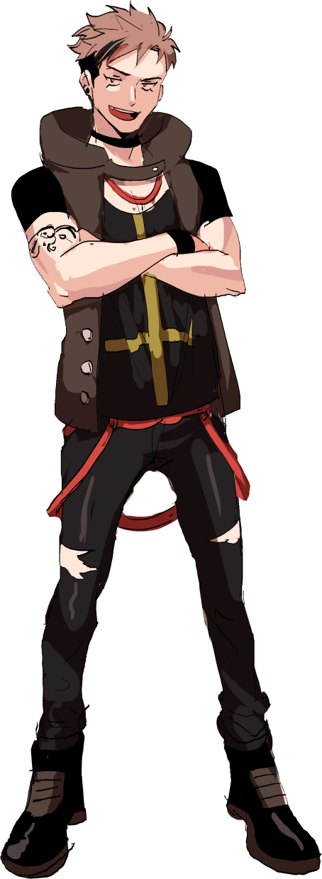 He is a rowdy young man with an affinity for reptiles. He might not be the brightest, but his passion for singing is most likely unparalleled. He forgets to take showers and has a bad sleeping schedule. His speech pattern is akin to a delinquent and he lacks proper manners. Needless to say, he is still a kind and well-meaning boy. He is a childhood friend of GAO and looks up to him greatly.